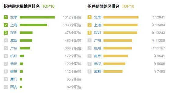 圖表中根據(jù)地區(qū)企業(yè)近一年發(fā)布的職位招聘信息統(tǒng)計(jì)所得,縱軸為職位需求量(單位:個(gè)),橫軸為招聘時(shí)間,曲線峰值越高代表需求量越大。反之,需求量較少。
