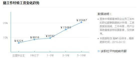 以人才需求來看,一般要求大專、本科學(xué)歷,一年以上開發(fā)經(jīng)驗(yàn)的人員一般待遇都會(huì)在10k左右,高級(jí)人才甚至達(dá)到20K-25K。隨著工作經(jīng)驗(yàn)和技能的增加,從業(yè)人員薪資水平不斷增長。